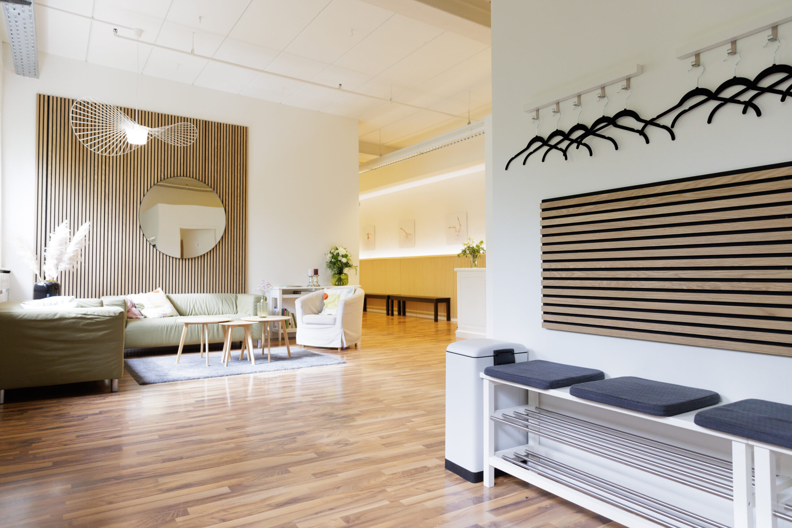 Die Räume des Tanztheaters Ludwigsburg liegen idyllisch; zwischen hochgewachsenen Bäumen und einer verkehrsberuhigten Straße in den ehemaligen Verwaltungsräumen des Baumarkt Hornbach. Dort findet ihr unsere lichtdurchfluteten Räume mit einem ruhigen großen Foyer und einem durch große Fenster naturverbundenen Trainingssaal.